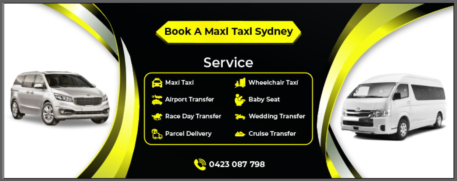 Welcome to Book a Maxi Sydney – your trusted partner for efficient transportation! Experience the convenience of Maxi Cab services with seamless online booking options. Whether it's Maxi Taxi bookings, Airport Transfers, or Cruise Transfers, we've got you covered. Our Wheelchair Maxi Taxis prioritize accessibility, while Baby Seat Taxis ensure safe travels for families. Choose us for reliable and comfortable journeys. Book now for a stress-free ride!
