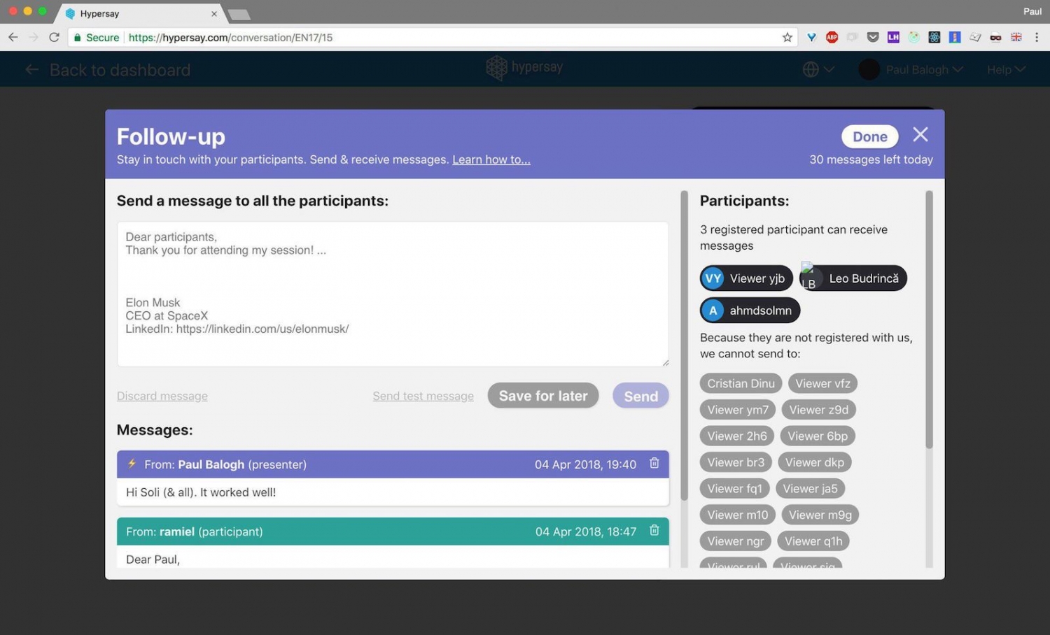 - Hypersay Events - End-to-end platform for hosting digital events. > https://hypersay.com/events