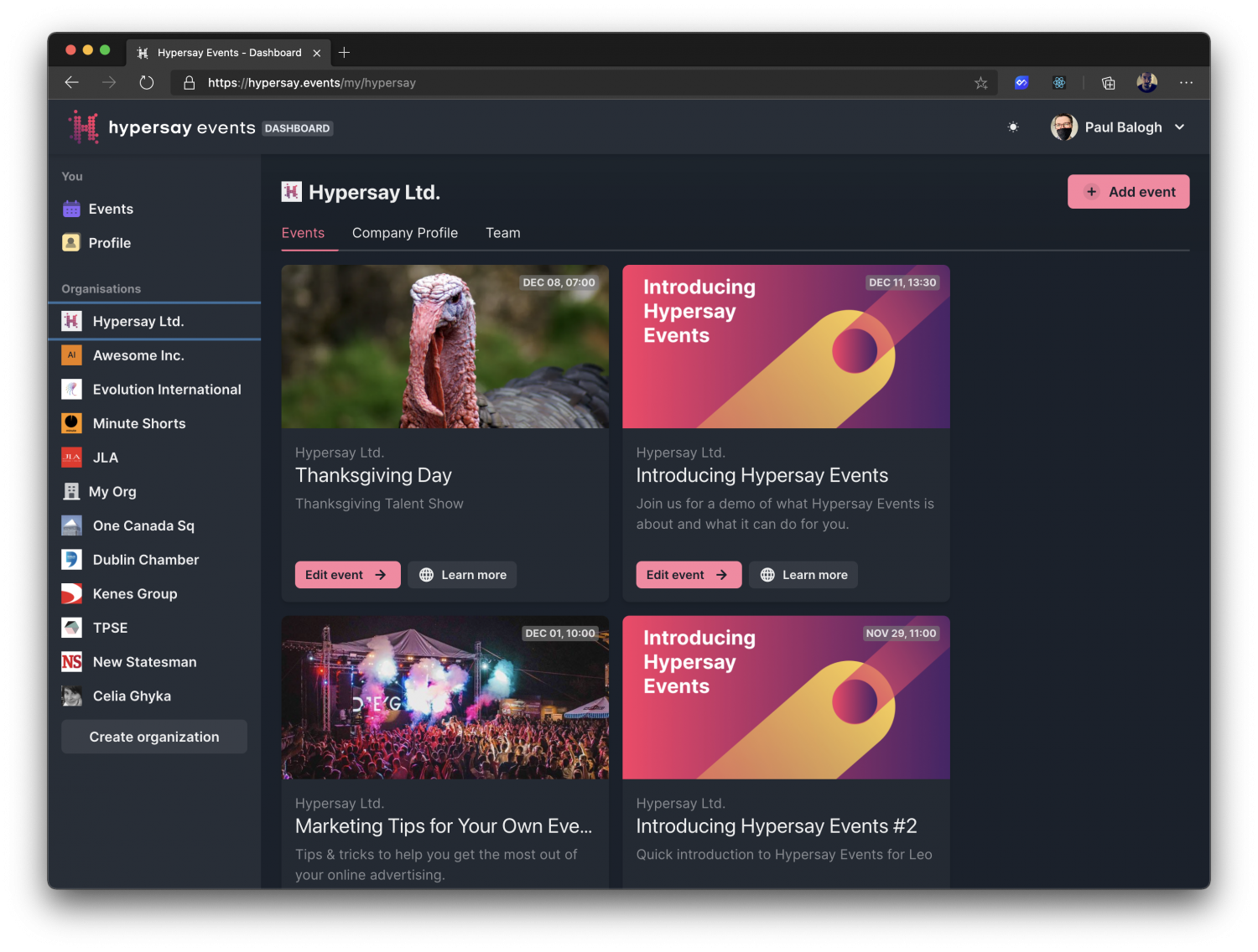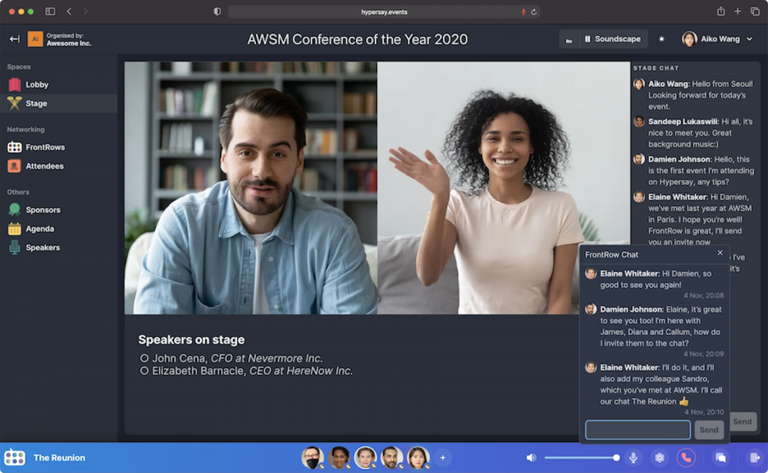Hypersay Events is a second-generation digital events platform, offering unique tools (such as FrontRow) to create emotional connections.